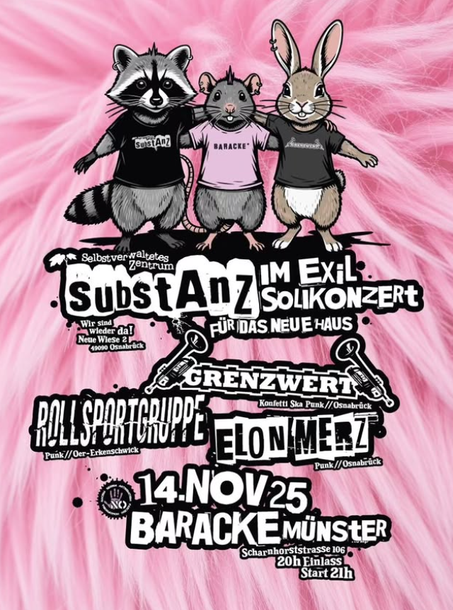 Unsere Freund*innen vom @substanz.osnabrueck veranstalten wieder ein Konzert im Exil, dieses Mal gemeinsam mit uns! Euch erwarten: